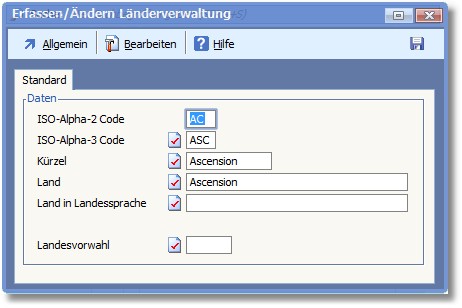 Navigation:  Finanzbuchhaltung > Stammdaten > Basisdaten > Länderverwaltung > Länder erfassen/ändern >