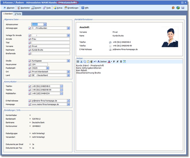 Die Karteikarte "Standard" (Privatanschrift)