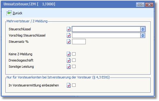 Wenn die Umsätze eines Sachkontos nicht in die Bemessungsgrundlage für die Z-Meldung einfließen sollen, aktivieren Sie den Status dieses Feldes þ.