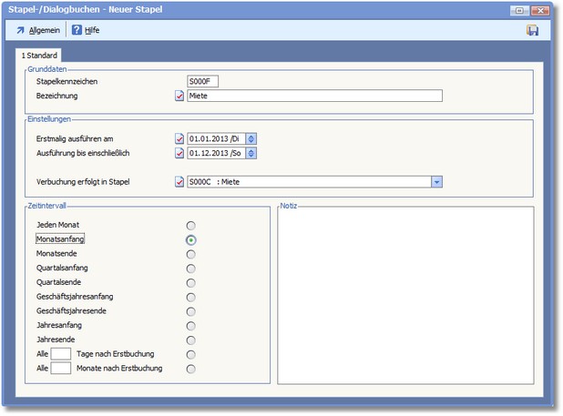 << Hier KLicken um eine Inhaltsübersicht anzuzeigen >> Navigation: Finanzbuchhaltung > Stapelbuchungen > Die Karteikarte "Terminbuchungen" > Terminbuchungen anlegen und ändern > Die Karteikarte Standard |