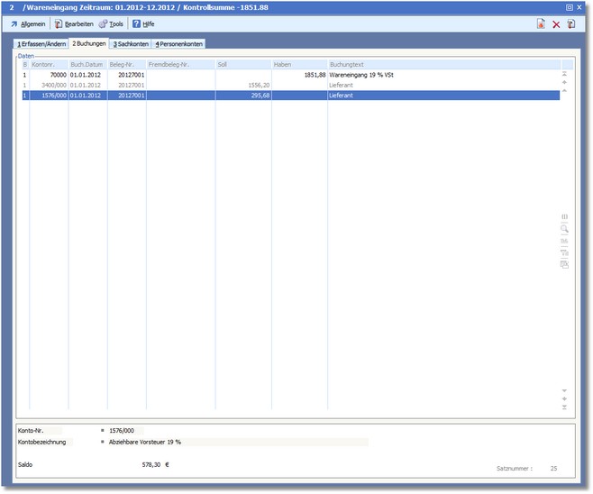 Navigation:  Finanzbuchhaltung > Stapelbuchungen > Die Karteikarte "Buchungen" > Buchungserfassung >