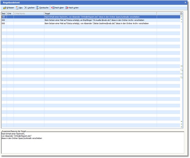 Mit [ALT]+[O] können Sie die in der Tabelle markierte Regel nach oben verschieben, d.h. die Regel wird vor der in der Tabelle nachfolgenden Regel angewandt.