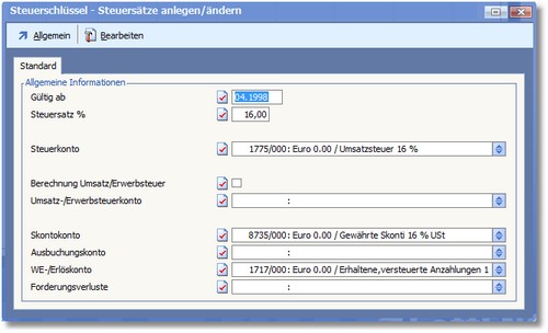 Navigation:  Finanzbuchhaltung > Stammdaten > Basisdaten > Steuerschlüssel >