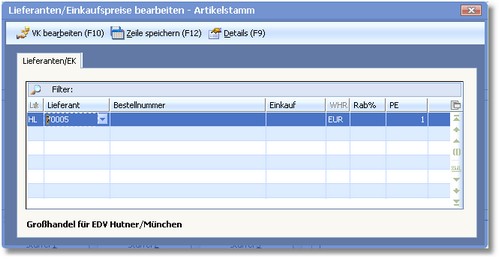 Das Programm öffnet den Dialog "Lieferanten/Einkaufspreise bearbeiten - Artikelstamm".