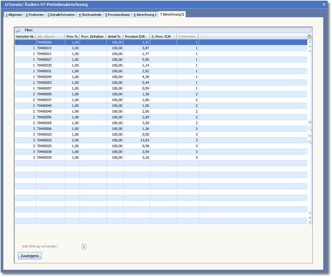 Navigation: Warenwirtschaft > Stammdaten > Vertreter > Vertreterstamm - Menü > Abrechnung >