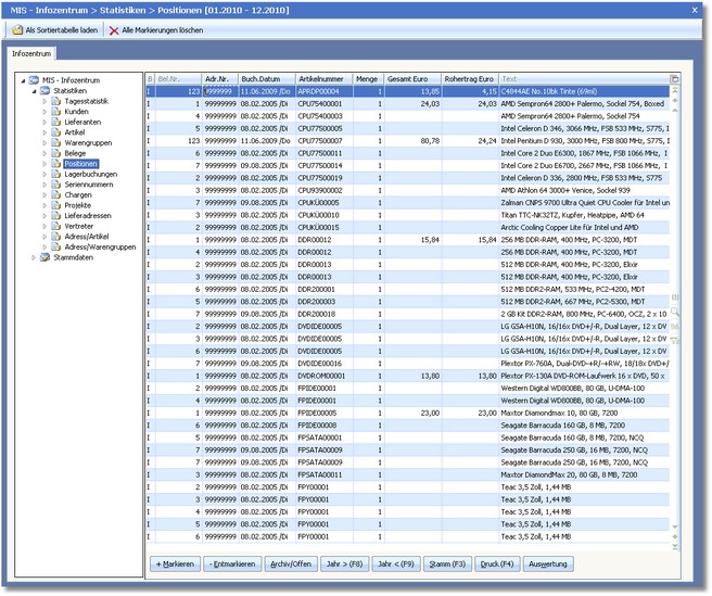 << Hier KLicken um eine Inhaltsübersicht anzuzeigen >> Navigation: Warenwirtschaft > Auswertungen > Informationszentrum > MIS-Infozentrum > Positionen |