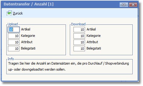 Hier wird die Anzahl der Datensätze für Up- und Download festgelegt.