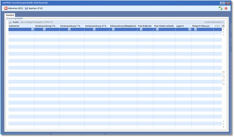<< Hier KLicken um eine Inhaltsübersicht anzuzeigen >> Navigation: Warenwirtschaft > Extras > Shopmanager > Marketplaces > emMida > Marketplace verwalten > Umsetzungstabellen > Subchannels |