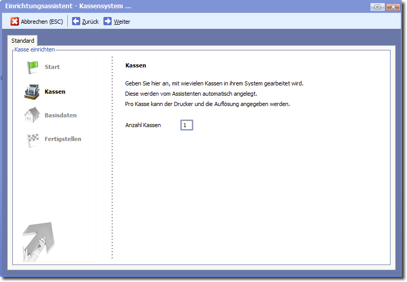 | Haben Sie die Anzahl der Kassen, mit denen Sie arbeiten möchten eingetragen, klicken Sie auf <Weiter>. |