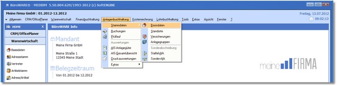 1. Klicken Sie mit der Maus im Hauptmenü auf "Anlagenbuchhaltung > Stammdaten > Basisdaten".