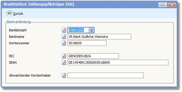 In diesem Dialogfenster können Sie bei Bedarf die Bankverbindung des Zahlungsempfängers für diese Zahlung ändern: