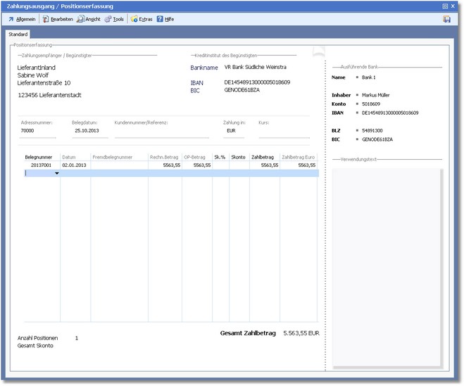 In der Positionserfassung können alle Zahlungspositionen mit einem Klick auf den gewünschten Bereich direkt bearbeitet werden: