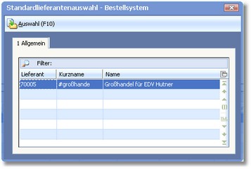 In einem Fenster stehen bis zu 5 Standardlieferanten zur Auswahl, die im Stammsatz des Artikels hinterlegt sind.