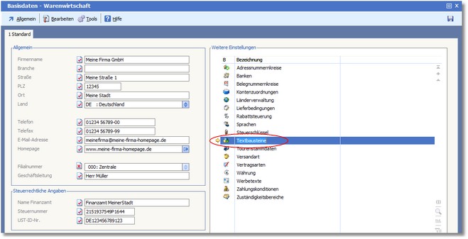<< Hier KLicken um eine Inhaltsübersicht anzuzeigen >> Navigation: Warenwirtschaft > Stammdaten > Basisdaten > Textbausteine |