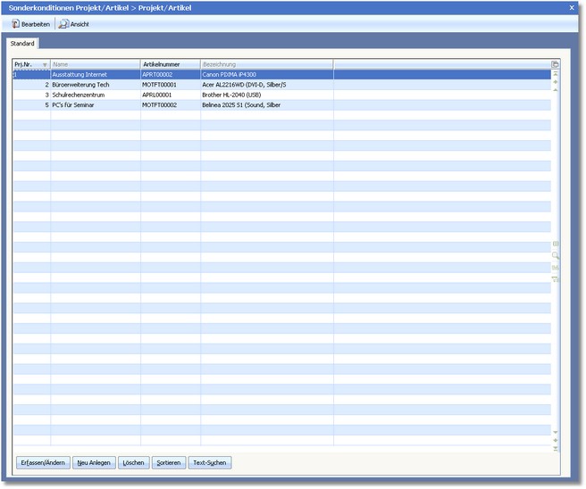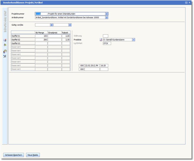 Das Programm öffnet den Dialog "Sonderkonditionen Projekt/Artikel".