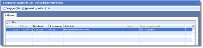 1. Klicken Sie mit der Maus in vorgelagerten Auswahltabelle der Handelsstücklisten auf den Symbolbutton <Assemblierungsmonitor>.