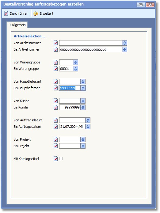 Eingrenzung des Bestellvorschlags anhand des Hauptlieferanten des Artikels.