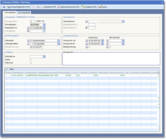 Für Wartungs- oder Mietverträge stellt das Programm folgenden Dialog zur Verfügung: