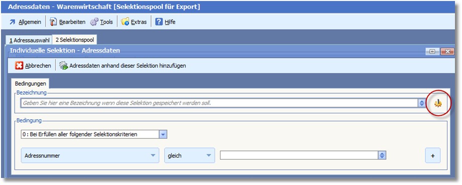 Die Profierfassung des Selektionspools bietet die Möglichkeit, innerhalb der Individuellen Selektion komplexe Selektionen mit &, # und sogar & und # Verknüpfungen in einer Zeile bis hin zu komplexen Klammerauflösungen durchzuführen.