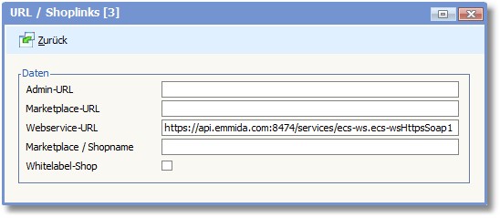 In dieser Optionsmaske werden die für den Marketplace hinterlegten Zugangsdaten angezeigt und können in den jeweiligen Feldern direkt bearbeitet werden.
