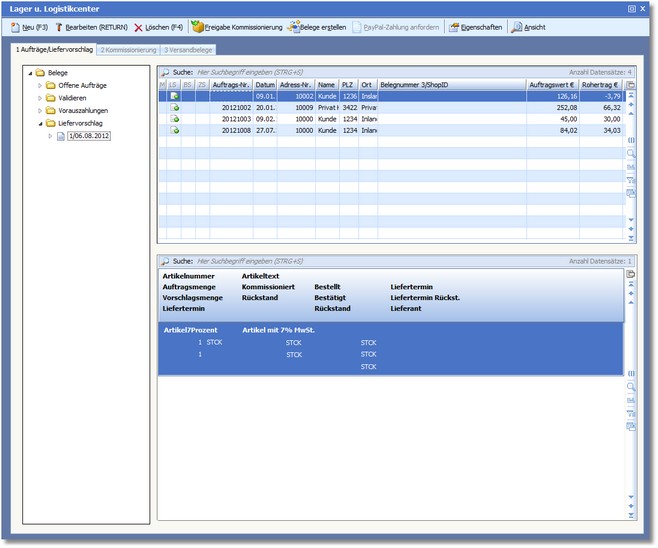 Das Liefersystem erstellt nach Ihren Vorgaben Liefervorschläge und stellt verschiedene Dialoge zum Kommissionieren und Verpacken der Waren zur Verfügung.