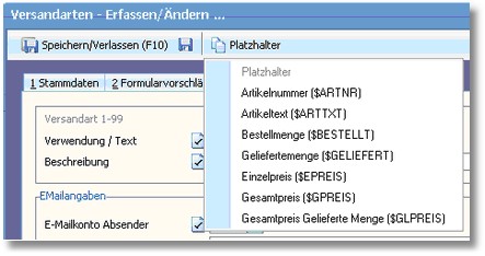 Innerhalb des Mailtextes besteht die Möglichkeit, auf die Kunden-, Beleg- und Trackingdaten zuzugreifen. Somit ist eine individuelle eMail an den Kunden möglich.