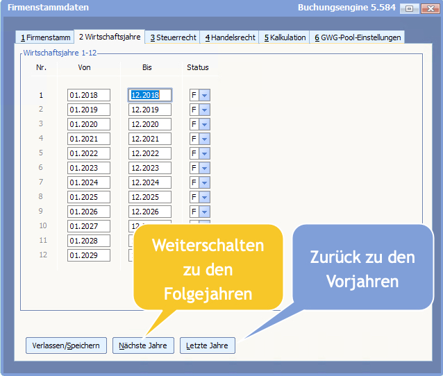 Dabei können auch vom Kalenderjahr abweichende Geschäftsjahre angegeben werden. Die Definition von Rumpfgeschäftsjahren ist ebenfalls möglich.