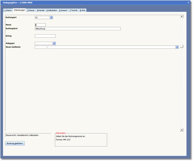 Navigation:  Anlagenbuchhaltung > Buchungen > Das Buchen von Anlagen >