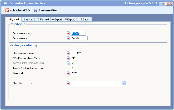 Navigation:  Finanzbuchhaltung > Stammdaten > Basisdaten > Datevcenter >