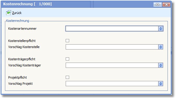 Das Buchen von Primärkosten auf Kostenstellen, Kostenträger und Projekte wird über den Menüeintrag "Bearbeiten > Optionen/Parameter >Kostenrechnung" dieses Dialogs gesteuert.