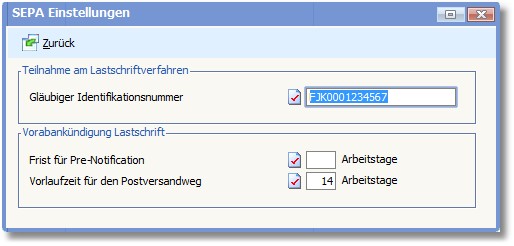 Hier werden grundlegende Einstellungen zu SEPA vorgenommen: