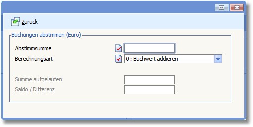 In diesem Feld kann eine Abstimmsumme hinterlegt werden, die bei der nächsten Buchungssitzung wieder aufgegriffen wird.