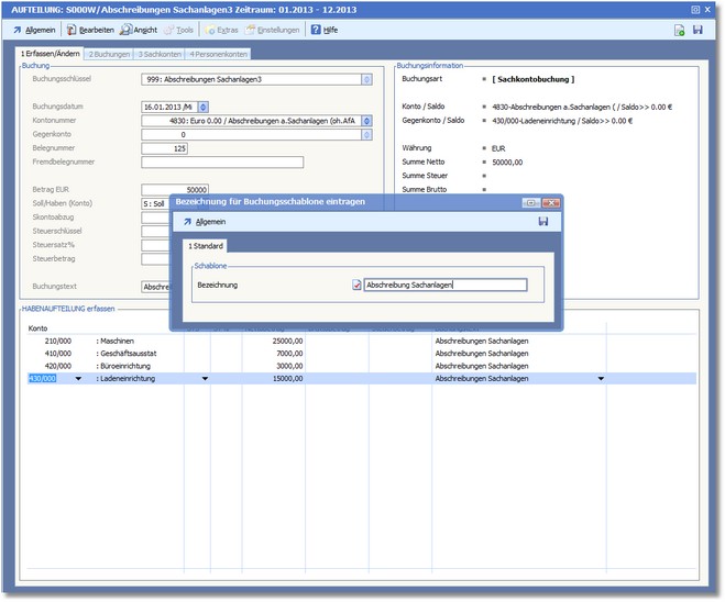 Navigation:  Finanzbuchhaltung > Laufende Vorgänge > Stapelbuchungen > Die Karteikarte "Schablonen" >