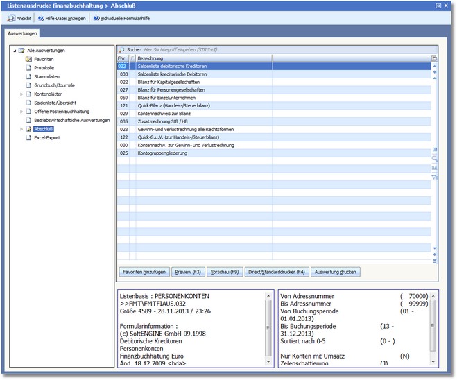 Navigation:  Finanzbuchhaltung > Monatliche/periodische Arbeiten > Auswertungen > Druckauswertungen >