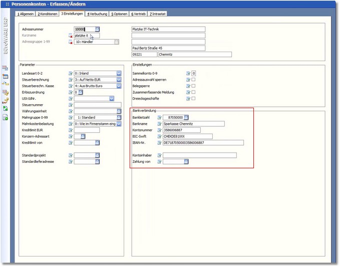 2. Weiterhin müssen in den Stammdaten der einzelnen Banken die Einstellungen zu SEPA hinterlegt werden.