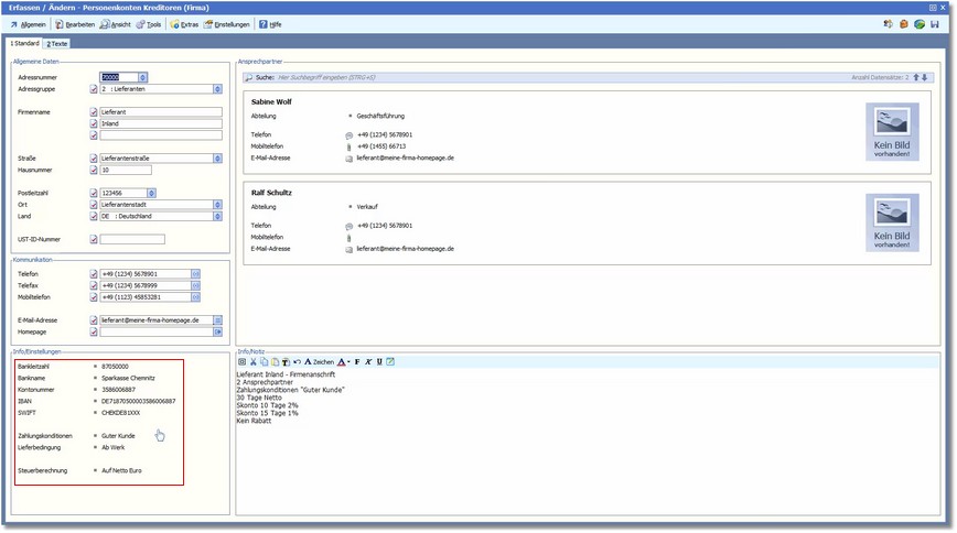 Die Karteikarte "Standard" (Firma)