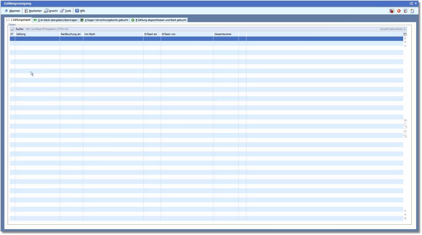 Das Programm öffnet den Dialog zur zentralen Bearbeitung von Zahlungsausgängen.