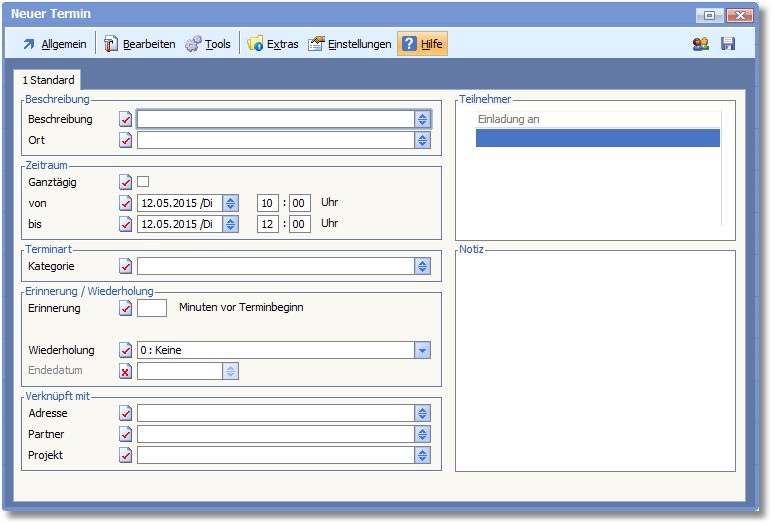 Termine bearbeiten - Karteikarte "Standard"