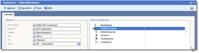 Navigation:  CRM/OfficePlaner > Stammdaten > Basisdaten >