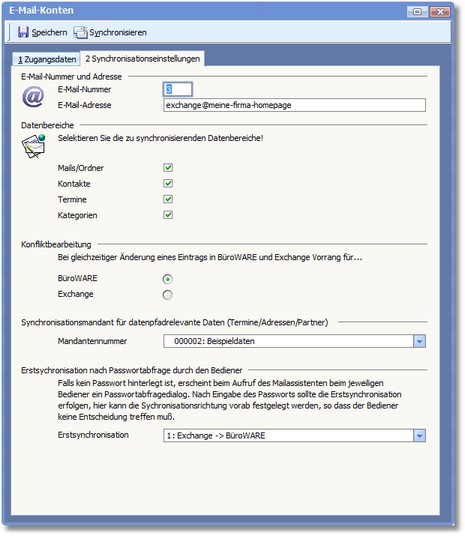 Exchangekonto - Synchronisationseinstellungen