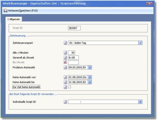 Hier gelangen Sie mit [F5] in die Auswahl Workflowmanager, wo Sie ein individuelles Workflowscript hinterlegen.