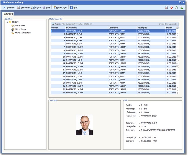 In der Medienverwaltung werden in einer zentralen Datenbank alle Dateien verwaltet, für die bei den jeweiligen Artikeln hinterlegt werden (z.B. Artikelbilder).