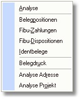 Über den Button <Auswertung> oder mit der Taste [RETURN] öffnet sich ein Popup-Menü mit folgenden Analysemöglichkeiten:
