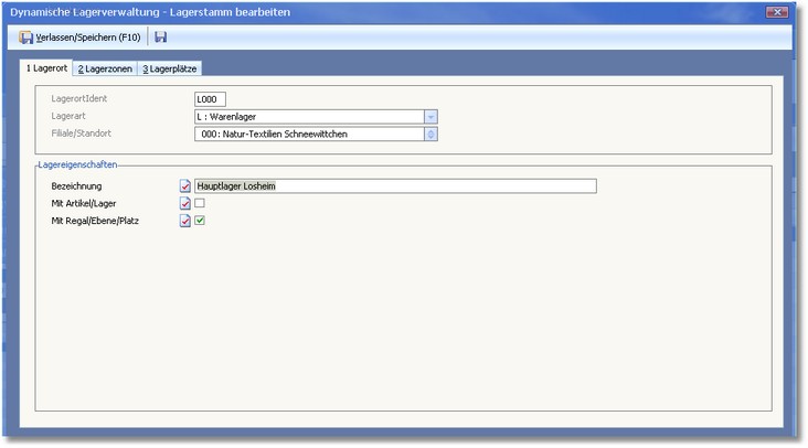 << Hier KLicken um eine Inhaltsübersicht anzuzeigen >> Navigation: Warenwirtschaft > Lagerverwaltung > Lagerstamm > Lager anlegen und ändern > Lagerort |