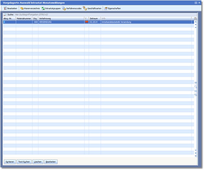 Das Programm öffnet die vorgelagerte Auswahltabelle "Intrastat Monatsmeldungen".
