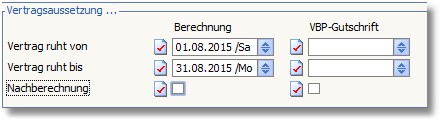 Da der Vertrag in unserem Beispiel für den Monat August ausgesetzt werden soll, tragen Sie hier mit Hilfe der [F5]-Taste folgende Werte ein: