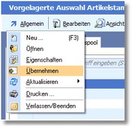 Wählen Sie im Selektionspool den Menüpunkt "Allgemein > Übernehmen".