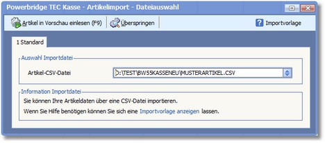 5. [F9] oder startet den Import der Artikelstammdaten.