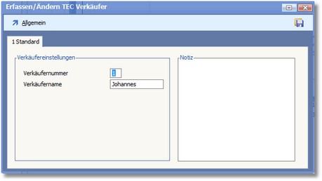 Der Bearbeitungsdialog Verkäufer stellt folgende Felder bereit:
