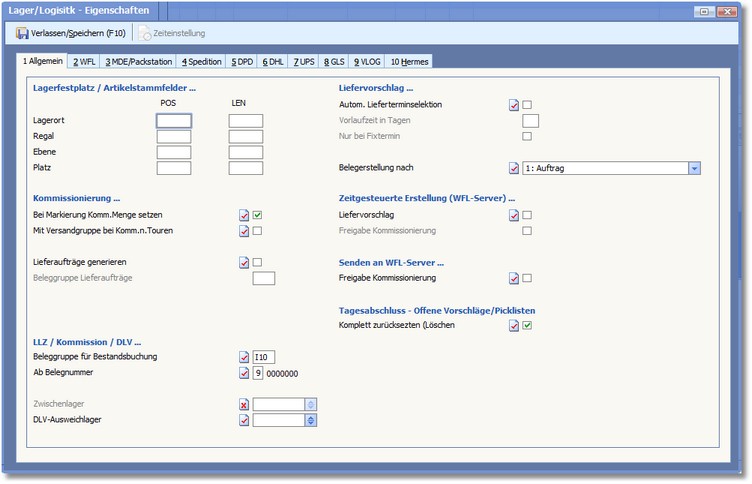 In dieser Karteikarte werden grundlegende Einstellungen für die automatische Erstellung der Liefervorschläge bzw. den Kommissionierungsablauf festgelegt.